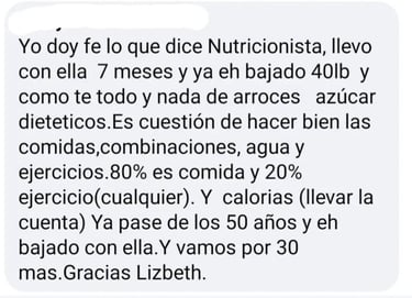 Mi nombre es Lisbeth Santiago Mercedes y soy nutricionista-dietista licenciada. Hice mi bachillerato en Nutrición en el Recinto de Río Piedras de la UPR, cursé una Maestría en Nutrición en el Recinto de Ciencias Médicas de la UPR y luego hice mi práctica supervisada en el programa de Internado en Dietética del Departamento de Salud. Además, cuento con las certificaciones del Colegio de Nutricionistas de Manejo Médico Nutricional para el Control de Peso y de Educadora en Diabetes.